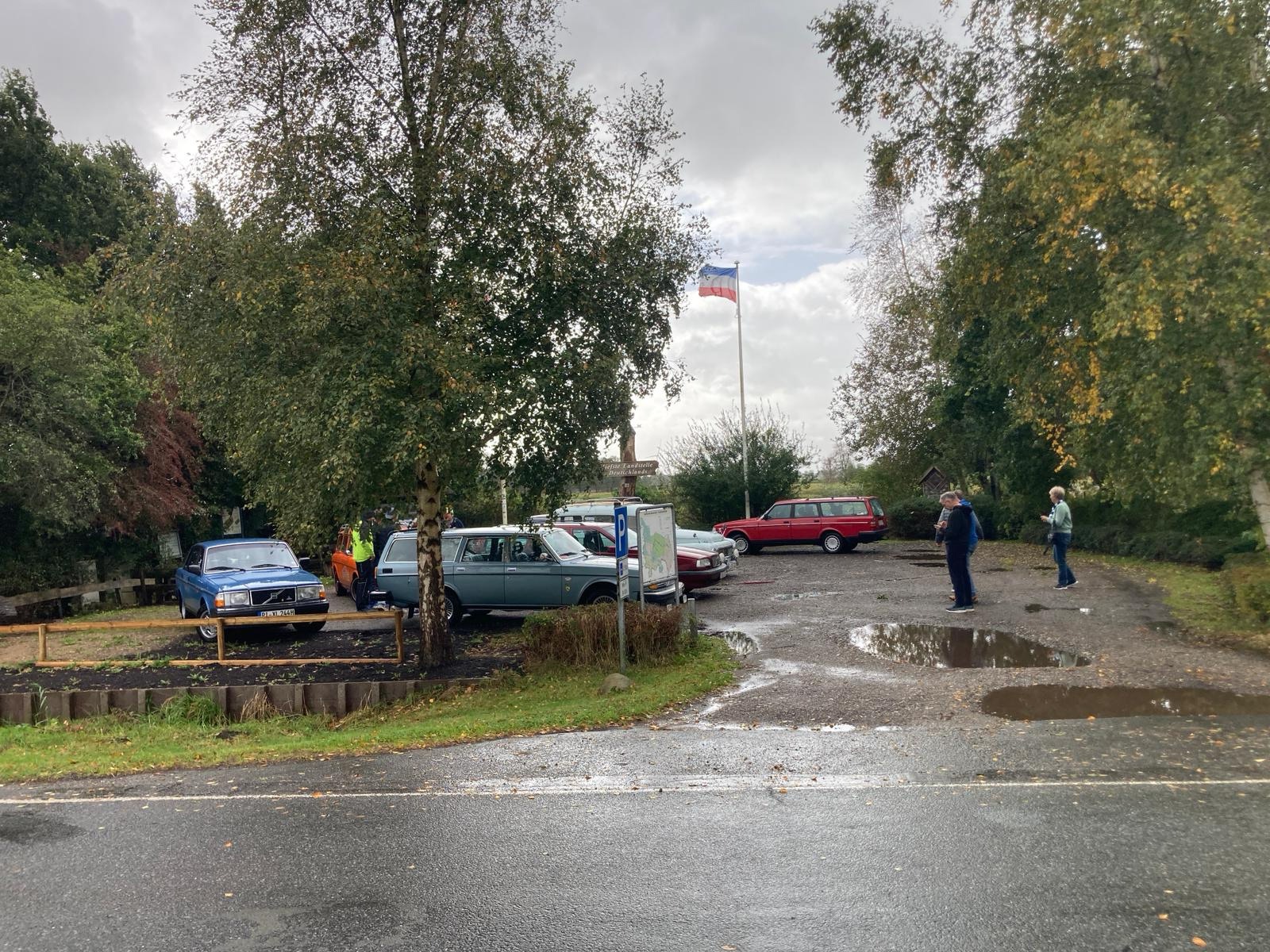 Nach einem gemeinsamen Frühstück haben wir dann die feuchtfröhliche Runde gegen 11.30 Uhr begonnen. Probleme mit Fliegen an der Windschutzscheibe oder Staub auf dem Lack gab es zum Glück nicht, der Regen hat einfach alles weggespült …