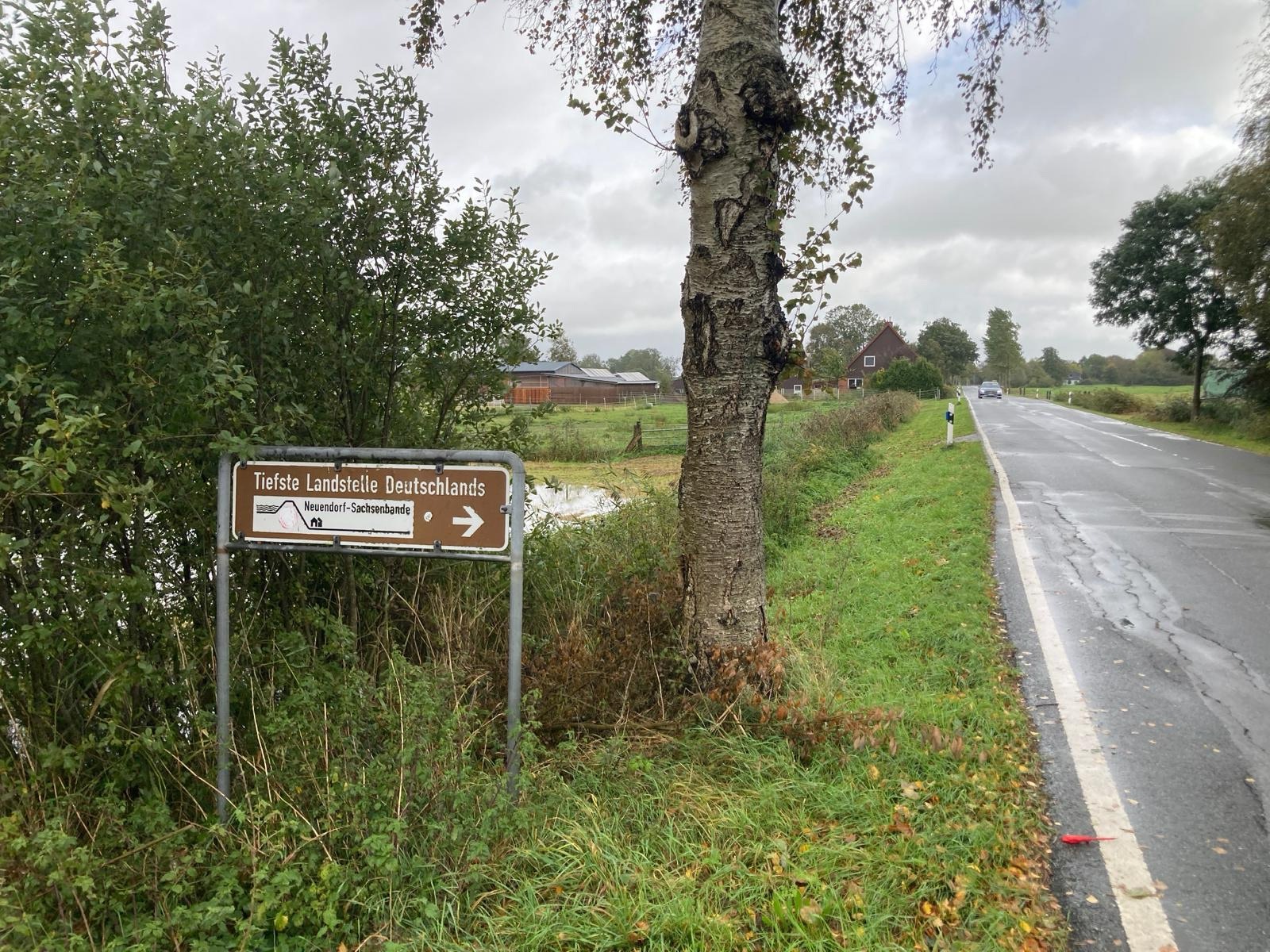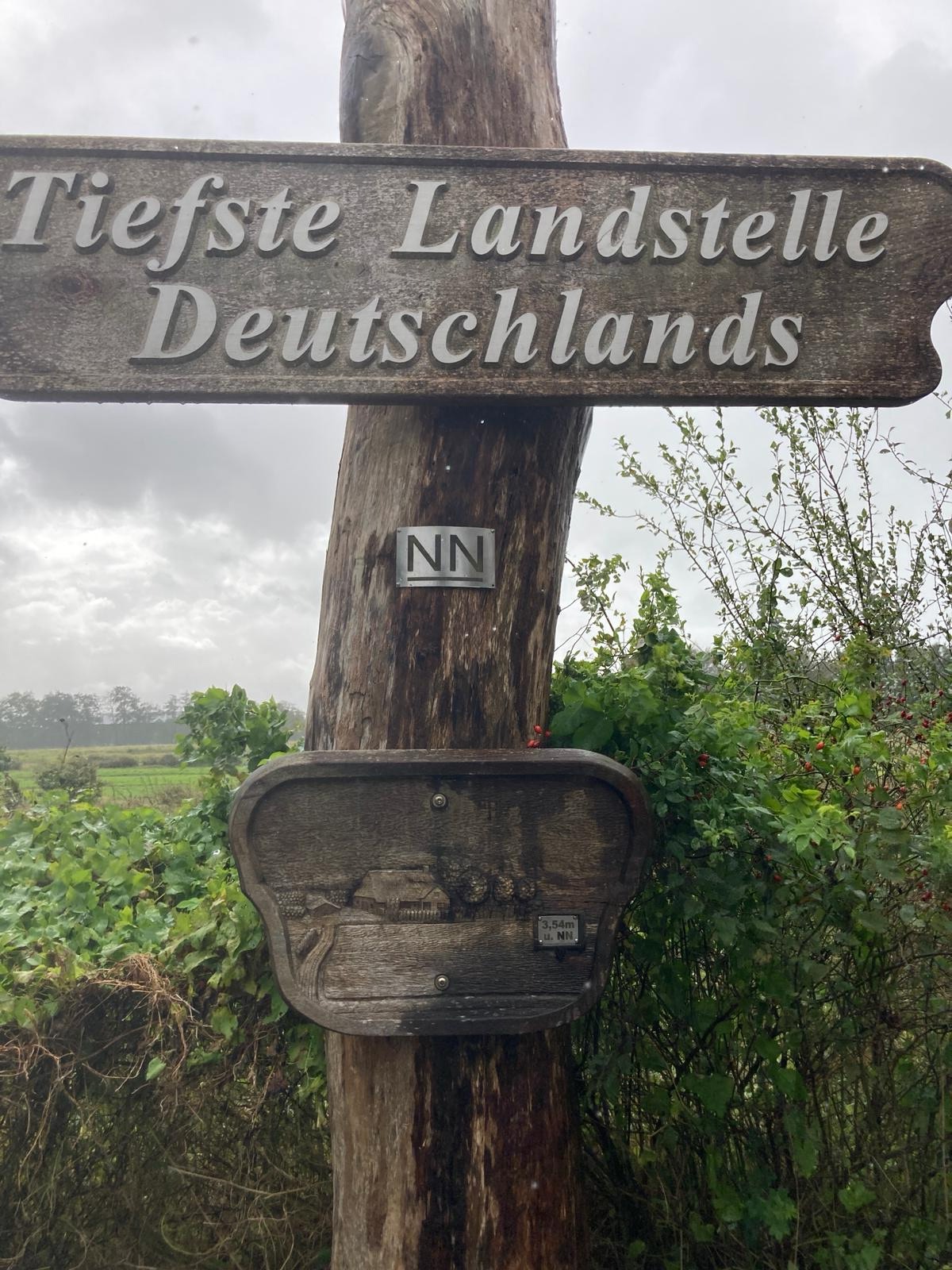 Da wir ja beim Anrollen bereits im Frühjahr den höchsten Punkt in Schleswig-Holstein erklommen hatten, war es fast schon zu erwarten, dass wir nun den tiefsten Landpunkt in Deutschland anfahren mussten. Somit haben wir neben 168 Höhenmetern am Bungsberg nun auch 3,54 Meter unterhalb des Meeresspiegels in der Wilstermarsch in Neuendorf-Sachsenbande erreicht und ein Päuschen eingelegt. Dabei haben wir uns standesgemäß im Gästebuch verewigt.